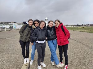 Après une rapide installation à l'auberge de jeunesse, les voilà déjà en visite. Ils continuent sur le thème aérien de ce début de séjour en découvrant le parc de Tempelhof, ancien aéroport de la ville, réhabilité en espace vert.
